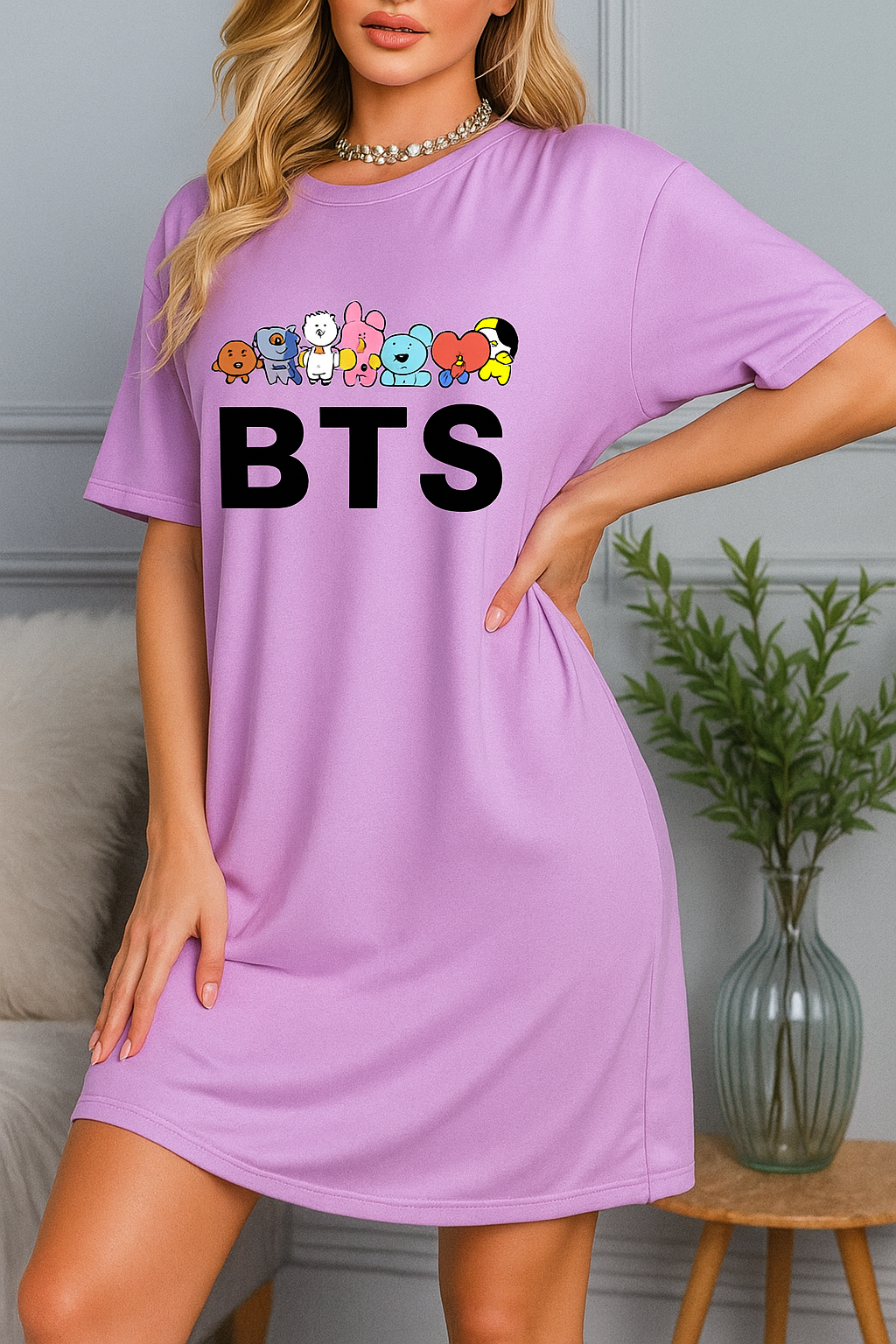 Casual Long T-Shirt Dress for Women – BTS Graphic Print